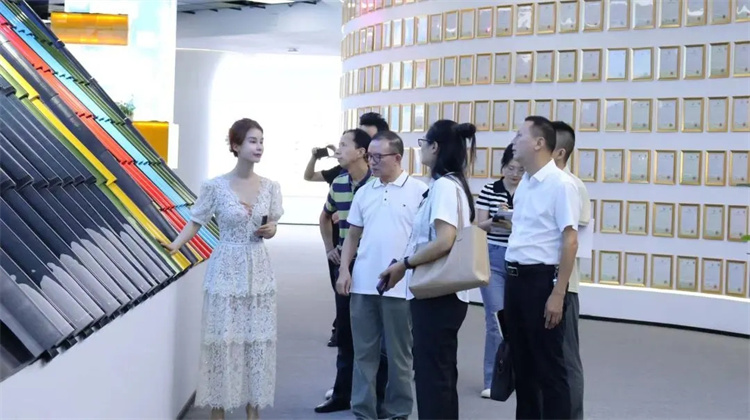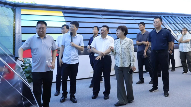 在章良懿的陪同下,于鸷隆一行先后走进企业展厅、曦集·零碳安居,详细了解企业基本情况、产品布局、项目建设及园区发展情况,深入调研企业在科技创新、成果转化等工作建设成果。